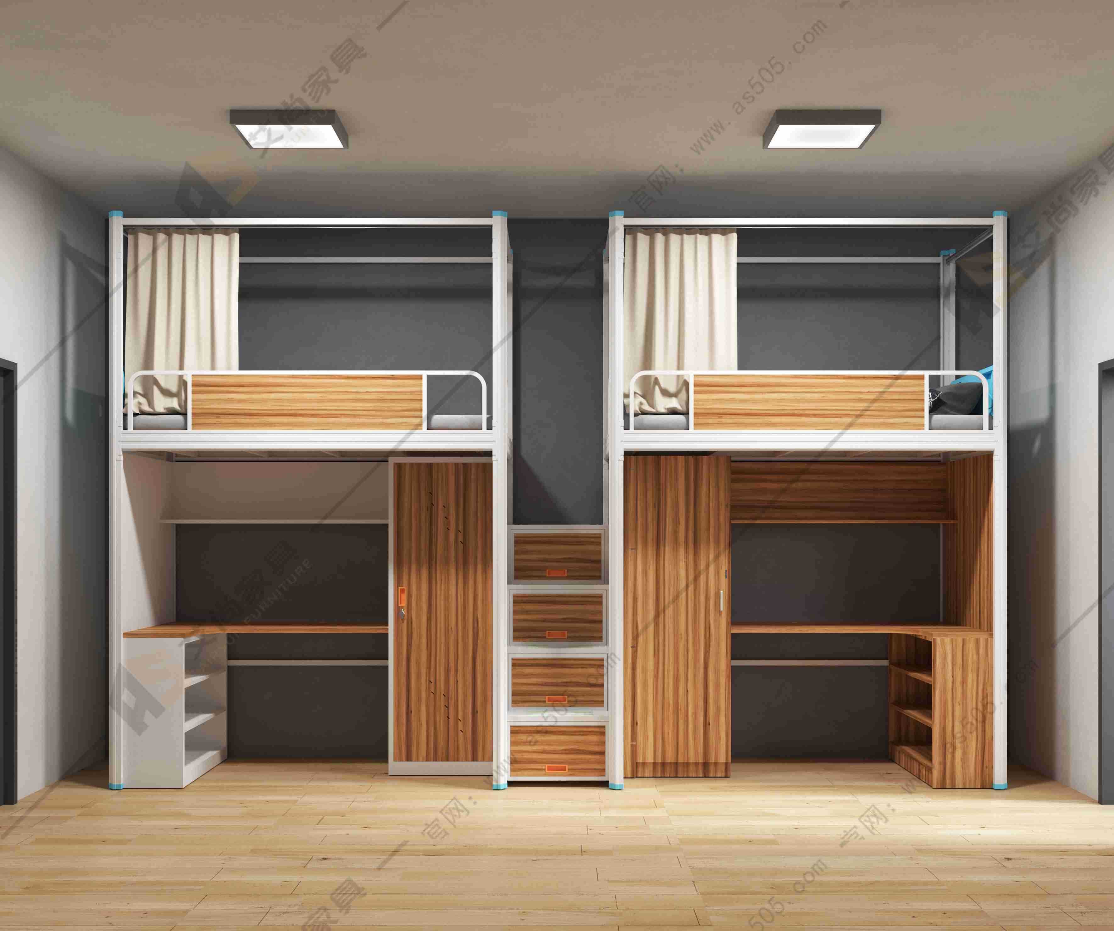 艾尚學(xué)生宿舍床樓梯板表面都有防滑紋,防止上樓梯時(shí)不小心滑倒。表面有多條加強(qiáng)筋,并且加高護(hù)欄,質(zhì)量且穩(wěn)固。學(xué)生公寓床的每個(gè)接觸棱角均打磨光滑,能夠保護(hù)質(zhì)量。您所擔(dān)憂的我們都想到了!